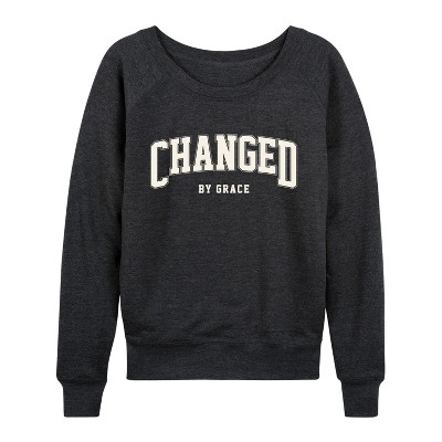 Women's Instant Message Bloom With Grace Lightweight French Terry Wide Neck Long Sleeve Graphic Shirt - Heather Charcoal - Small