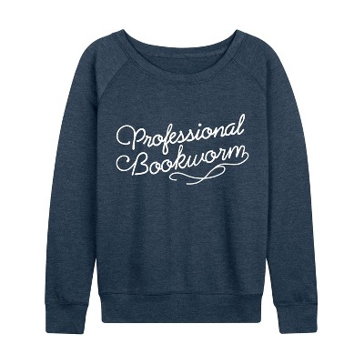 Women's Instant Message Books Comfy Clothes Lightweight French Terry Wide Neck Long Sleeve Graphic Shirt - Heather Indigo - Medium