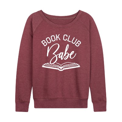 Women's Instant Message Cat Book Shelf Lightweight French Terry Wide Neck Long Sleeve Graphic Shirt - Heather Maroon - X-Large