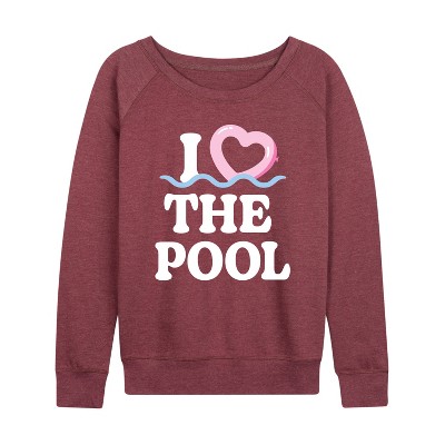 Women's Instant Message Cat Mom Club Lightweight French Terry Wide Neck Long Sleeve Graphic Shirt - Heather Maroon - Small