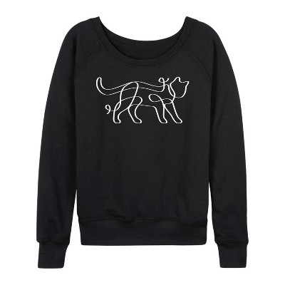 Women's Instant Message Cat Moon Phases Lightweight French Terry Wide Neck Long Sleeve Graphic Shirt - Heather Charcoal - Small