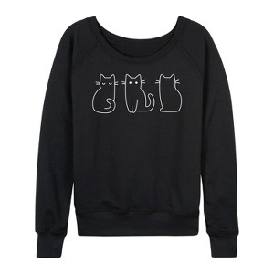 Women's - Instant Message - Cat Outlines Lightweight French Terry Wide Neck Long Sleeve Graphic Shirt - 1 of 4