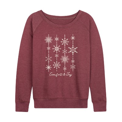 Women's Instant Message Cat Playing With Stars Lightweight French Terry Wide Neck Long Sleeve Graphic Shirt - Heather Maroon - Small