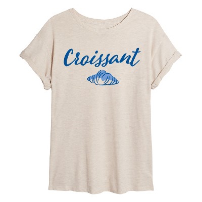 Women's Instant Message Champagne and French Fries Oversized Graphic T-Shirt - Birch - Small