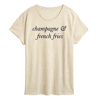 Women's Instant Message Champagne and French Fries Oversized Graphic T-Shirt - Birch - Small
