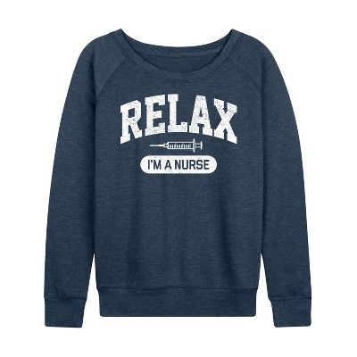 Women's Instant Message Changed By Grace Collegiate Lightweight French Terry Wide Neck Long Sleeve Graphic Shirt - Heather Indigo - Medium