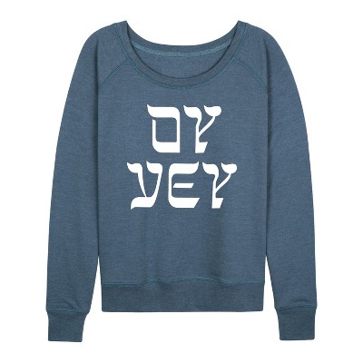 Women's Instant Message Chanukah Stacked Lightweight French Terry Wide Neck Long Sleeve Graphic Shirt - Heather Blue - 1X