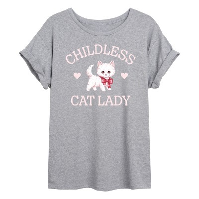 Instant Message - Childless Cat Lady Black - Women's Oversized Graphic T-Shirt - Instant Message is an online specialty fashion retailer for everything from funny to inspiring printed apparel. We offer a range of garments from long sleeve and relaxed fit t-shirts, to lightweight french-terry long sleeve shirts, hoodies and graphic print pullovers. Our products feature fun and trendy graphics that are perfect for any occasion and also make great gifts.