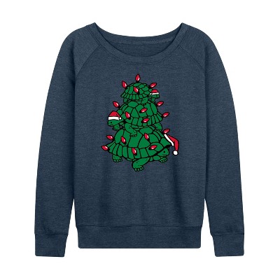 Women's Instant Message Christmas Cats, Tree, & Décor Lightweight French Terry Wide Neck Long Sleeve Graphic Shirt - Heather Indigo - Small