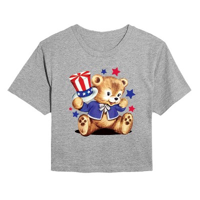 Women's Instant Message Christmas Teddy Bear Cropped Graphic T-Shirt - Heather Grey - 2 X-Large