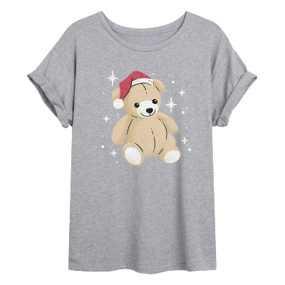 Women's Instant Message Christmas Teddy Bear Oversized Graphic T-Shirt - Heather Grey - X-Large