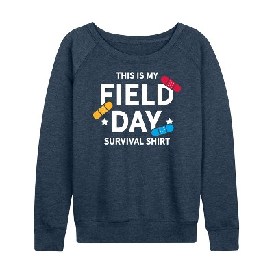 Women's Instant Message Clearwater Beach Lightweight French Terry Wide Neck Long Sleeve Graphic Shirt - Heather Indigo - Medium