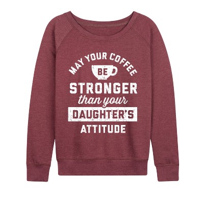 Women's Instant Message Coffee Eeffoc Lightweight French Terry Wide Neck Long Sleeve Graphic Shirt - Heather Maroon - X-Large