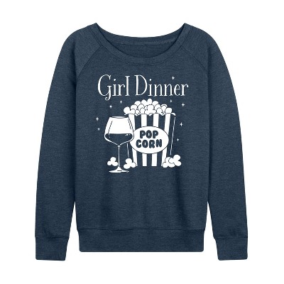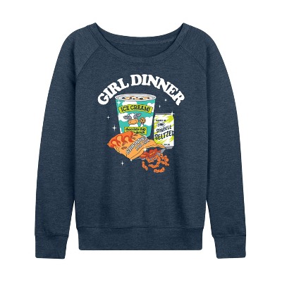 Women's Instant Message Coffee Lover Lightweight French Terry Wide Neck Long Sleeve Graphic Shirt - Heather Indigo - Large
