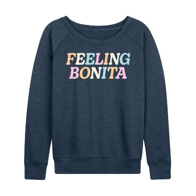 Women's Instant Message Collegiate Teach Lightweight French Terry Wide Neck Long Sleeve Graphic Shirt - Heather Indigo - Medium
