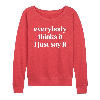 Women's Instant Message Comfy But Classy Lightweight French Terry Wide Neck Long Sleeve Graphic Shirt - Heather Charcoal - Small