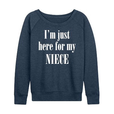 Women's Instant Message Cool Aunts Club Lightweight French Terry Wide Neck Long Sleeve Graphic Shirt - Heather Indigo - Medium