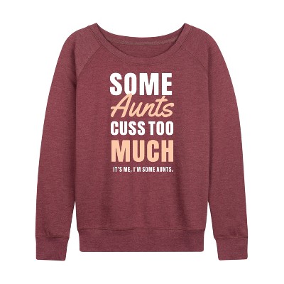 Women's Instant Message Crazy Sisters Make The Best Aunts Lightweight French Terry Wide Neck Long Sleeve Graphic Shirt - Heather Maroon - X-Large