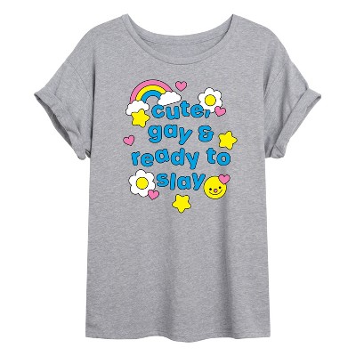 Women's Instant Message Cute Gay Ready Slay Cropped Graphic T-Shirt - Heather Grey - Small