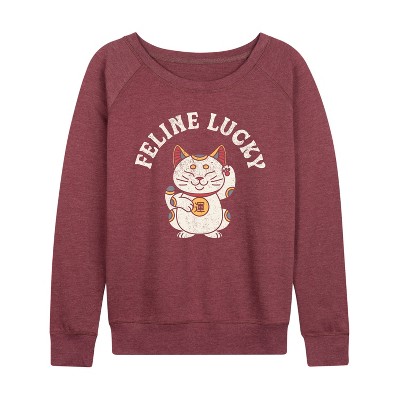 Women's Instant Message Delusional And Proud Lightweight French Terry Wide Neck Long Sleeve Graphic Shirt - Heather Maroon - Small