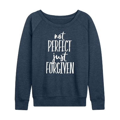 Women's Instant Message Devil Is A Liar Lightweight French Terry Wide Neck Long Sleeve Graphic Shirt - Heather Indigo - Medium