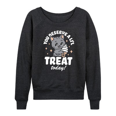 Women's Instant Message Disco Nite Lightweight French Terry Wide Neck Long Sleeve Graphic Shirt - Heather Charcoal - Small