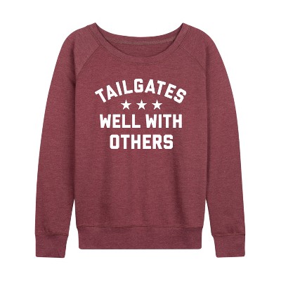 Women's Instant Message Don't Hate Tailgate Lightweight French Terry Wide Neck Long Sleeve Graphic Shirt - Heather Maroon - X-Large