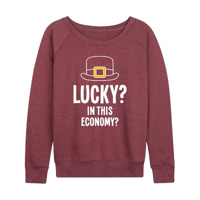 Women's Instant Message Down For Some Shenanigans Lightweight French Terry Wide Neck Long Sleeve Graphic Shirt - Heather Maroon - X-Large
