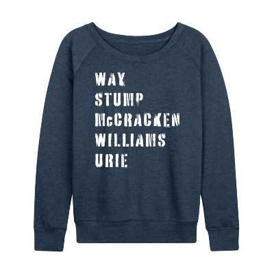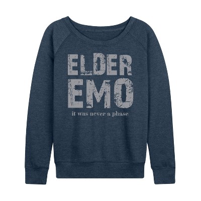 Women's Instant Message Emo 4 Lyfe Lightweight French Terry Wide Neck Long Sleeve Graphic Shirt - Heather Indigo - Medium