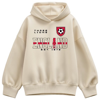 Women's Instant Message England Soccer Jersey Oversized Fleece Crew Sweatshirt - Cream - 2 X-Large