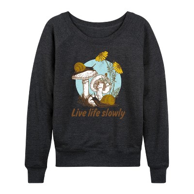 Women's Instant Message Fairy Frog Lightweight French Terry Wide Neck Long Sleeve Graphic Shirt - Heather Charcoal - Medium