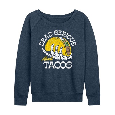 Women's Instant Message Fall Lightweight French Terry Wide Neck Long Sleeve Graphic Shirt - Heather Indigo - Medium