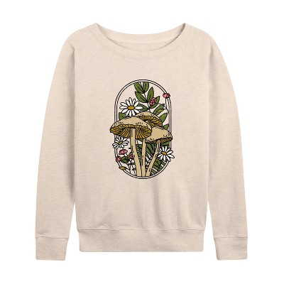 Women's - Instant Message - Fall Mushrooms Lightweight French Terry Wide Neck Long Sleeve Graphic Shirt - 1 of 4