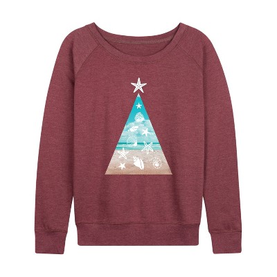 Women's Instant Message Farm Fresh Christmas Trees Lightweight French Terry Wide Neck Long Sleeve Graphic Shirt - Heather Maroon - X-Large