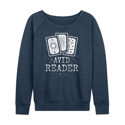 Women's Instant Message Fearless Reader Lightweight French Terry Wide Neck Long Sleeve Graphic Shirt - Black - Small