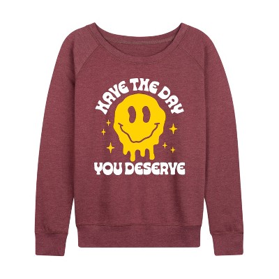 Women's Instant Message Feelin Eggstra Lightweight French Terry Wide Neck Long Sleeve Graphic Shirt - Heather Maroon - X-Large