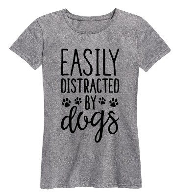 Women's Instant Message Floral Dog Paw Prints Short Sleeve Graphic T-Shirt - Heather Charcoal - X-Large