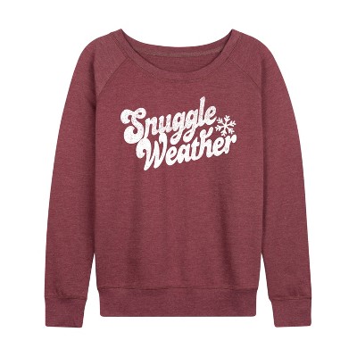Women's Instant Message Frog On Lily Pad Lightweight French Terry Wide Neck Long Sleeve Graphic Shirt - Heather Maroon - 4X