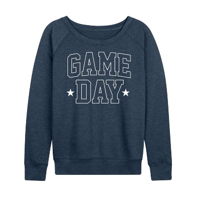 Women's Instant Message Game Day Lightweight French Terry Wide Neck Long Sleeve Graphic Shirt - Heather Charcoal - Large