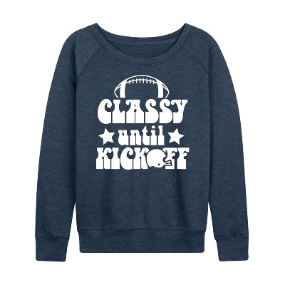 Women's Instant Message Game Day Lightweight French Terry Wide Neck Long Sleeve Graphic Shirt - Heather Indigo - X-Large