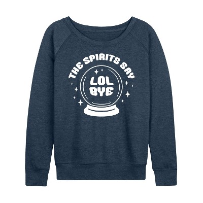 Women's Instant Message Getting Into Christmas Spirits Lightweight French Terry Wide Neck Long Sleeve Graphic Shirt - Heather Indigo - Medium