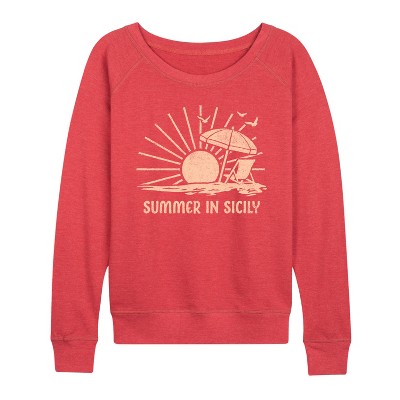 Women's Instant Message Greece Lightweight French Terry Wide Neck Long Sleeve Graphic Shirt - Heather Charcoal - Small