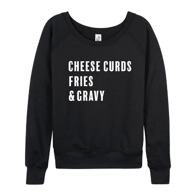 Women's Instant Message Had Me At Poutine Lightweight French Terry Wide Neck Long Sleeve Graphic Shirt - Heather Charcoal - Small