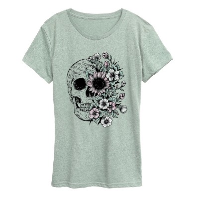 Women's Instant Message Half Skull Half Flowers Lightweight French Terry Wide Neck Long Sleeve Graphic Shirt - Birch - Small