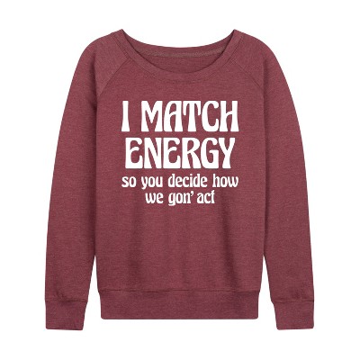 Women's Instant Message Hot Mess Boy Mama Lightweight French Terry Wide Neck Long Sleeve Graphic Shirt - Heather Maroon - Small