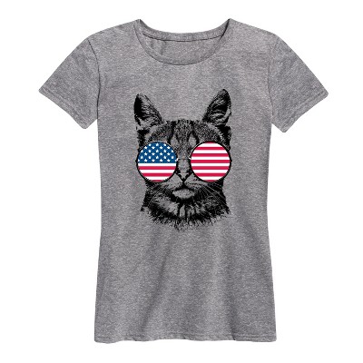 Women's Instant Message Hotdog, American Flag Patriotic Memorial Day Short Sleeve Graphic T-Shirt - Heather Blue - Small