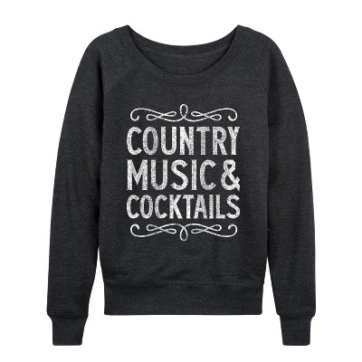 Women's Instant Message Howdy Cowboy Lightweight French Terry Wide Neck Long Sleeve Graphic Shirt - Black - Small