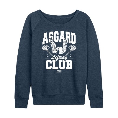Women's Instant Message Hug Me I'm Cold Lightweight French Terry Wide Neck Long Sleeve Graphic Shirt - Heather Indigo - Small