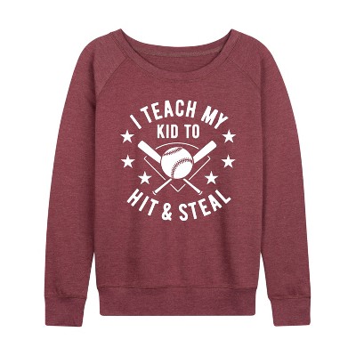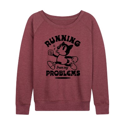 Women's Instant Message I Hate Everything Cat Lightweight French Terry Wide Neck Long Sleeve Graphic Shirt - Heather Maroon - X-Large