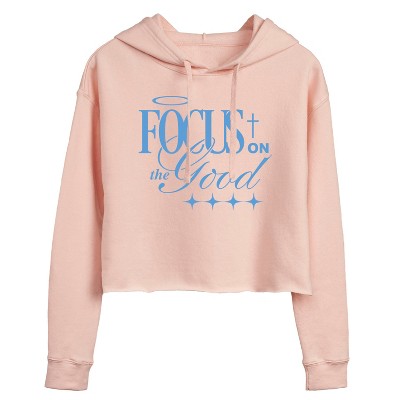 Women's Instant Message I Think I Like This Little Life Bear In Bed Cropped Graphic Hoodie - Blush - Small
